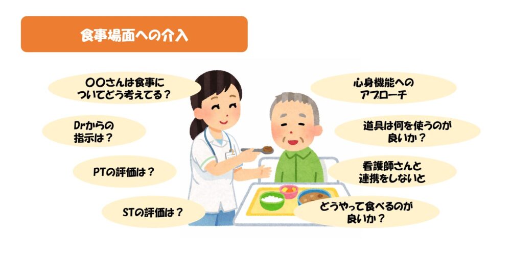 新人の頃は、スタッフルームに帰るたびに先輩から、「〇〇さんの食事場面は見てきたの?」「PTに△△は確認した?」と質問攻めにあってたなぁ。